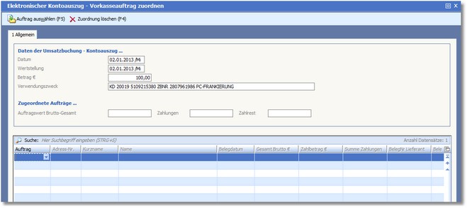 Vorkasseaufträge manuell zuordnen