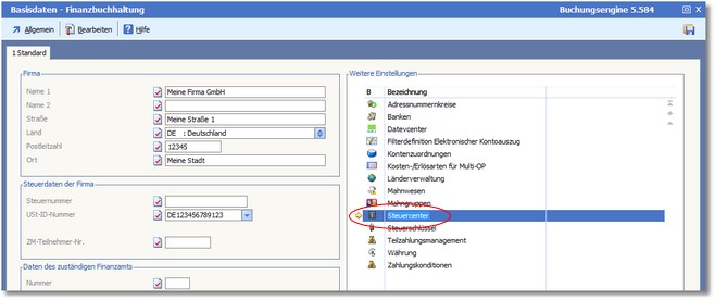 Die Basisdaten der Finanzbuchhaltung werden geöffnet.