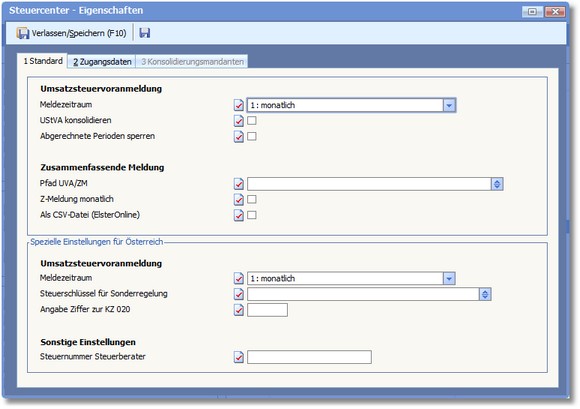 Damit die Steuerdaten (Umsatzsteuer, Dauerfristverlängerung, Z-Meldung) gedruckt werden können, müssen vorab Einstellungen im Steuercenter hinterlegt werden.