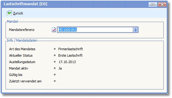 Hier wird das Lastschriftmandat eingetragen.