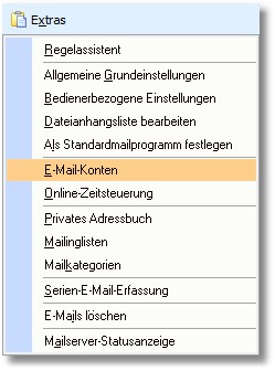 << Hier KLicken um eine Inhaltsübersicht anzuzeigen >> Navigation: OfficePlaner > Mailsystem > Mail einrichten > E-Mail-Assistent - Extras > E-Mail-Konten > Neues E-Mail-Konto |