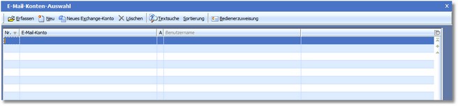 BüroWARE öffnet den Tabellendialog „E-Mail-Konten-Auswahl".