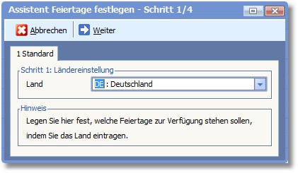 So definieren Sie die Feiertage mit dem Assistenten: