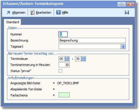 Navigation:  OfficePlaner > Terminverwaltung > Terminverwaltung - Menü > Terminkategorien > Terminkategorie erfassen/ändern >