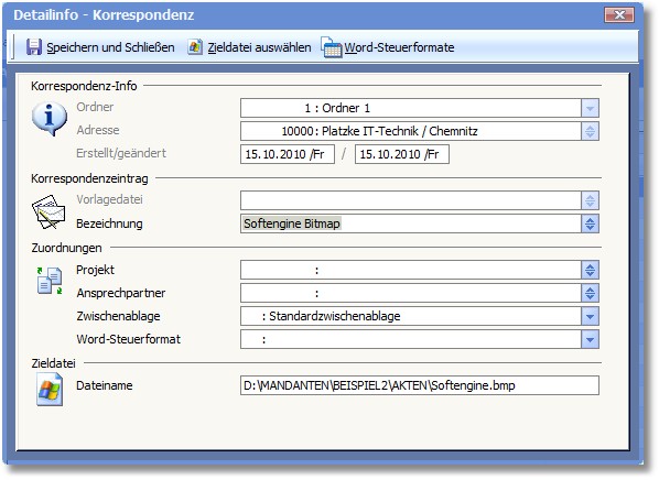 Mit der [F10]-Taste werden die Einstellungen gesichert. Sie kehren zum Korrespondenzdialog zurück.