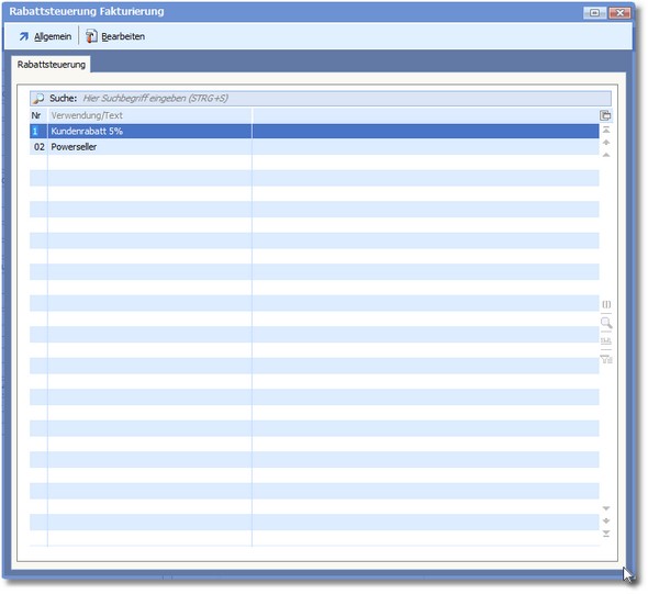 Das Programm öffnet die Rabattsteuerung Fakturierung.
