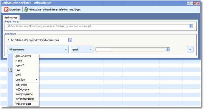 Der Dialog "Individuelle Selektion - Adressdaten" wird geöffnet.