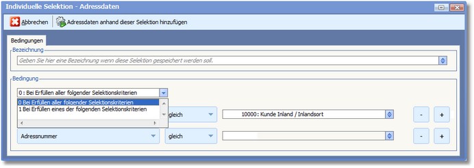 Mit der individuellen Selektion ist es möglich, komplexe Datenbankabfragen zu formulieren, um Datensätze für einen Selektionspool zu selektieren.