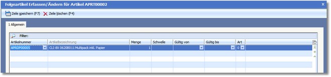 Das Programm öffnet den Dialog "Folgeartikel erfassen/Ändern für ...".