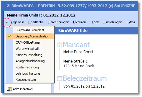 1. Rufen Sie den Designer über die ComboBox des Front Office auf.