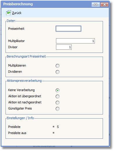 Der Bereich "Berechnungsart Preiseinheit"