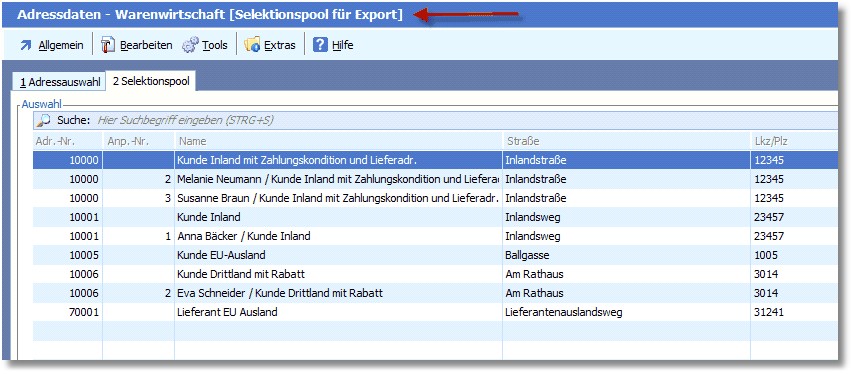 Bezeichnung des Selektionspools in Titelleiste
