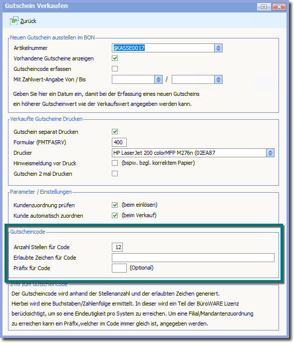 Der Gutscheincode besteht also aus Präfix + 9 Stellen.