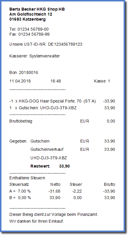 Einen Gutschein bei einer Warenrücknahme ausstellen