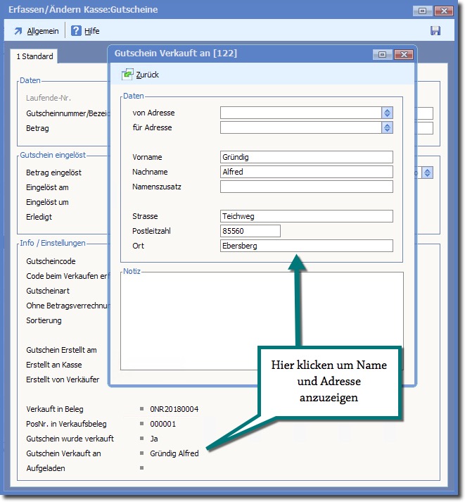 Einen Gutschein mit Adresse und/oder spezieller Bezeichnung verkaufen