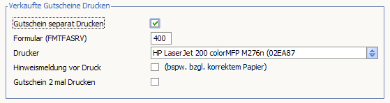 Ist diese Option aktiviert, wird zusätzlich zum Bon der Gutschein gedruckt.