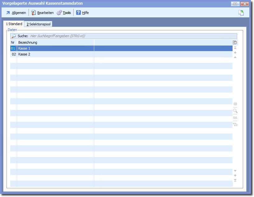 In der Auswahltabelle dann die Kasse öffnen.