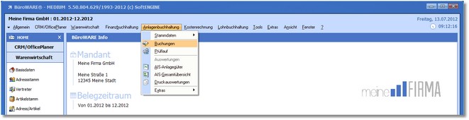 1. Klicken Sie mit der Maus im Hauptmenü auf "Anlagenbuchhaltung > Buchungen".