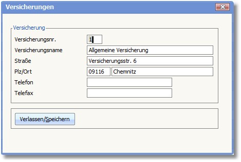 Mit der [F3]-Taste oder dem Button <Neu anlegen> wird eine neue Versicherung angelegt. Mit der [RETURN]-Taste können Sie einen bestehenden Datensatz bearbeiten.