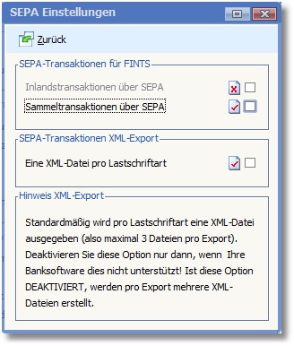 Standardmäßig ist diese Option aktiviert. Es wird automatisch pro Lastschriftart eine XML-Datei erstellt, die alle Informationen über die Transaktion enthält.