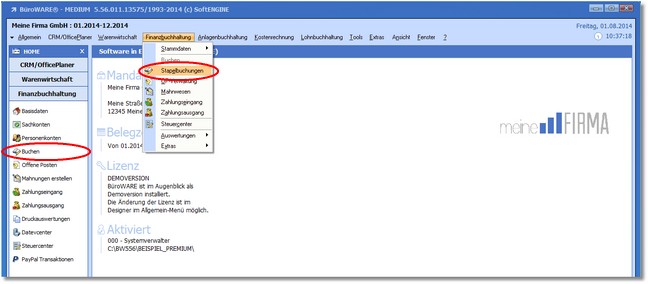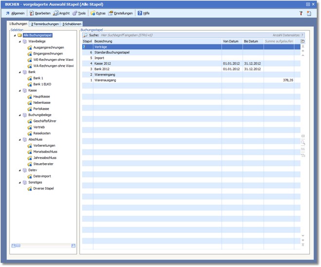 1. Öffnen Sie den Buchungsbereich über das Hauptmenü „Finanzbuchhaltung > Stapelbuchungen".