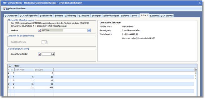 Navigation:  Finanzbuchhaltung > OP-Verwaltung > Debitorenkennzahlen/Rating > Debitorenrating einrichten >