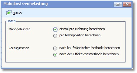 Hier legen Sie durch Aktivierung der entsprechenden Option fest, wie die Berechnung der Mahngebühren gehandhabt wird: