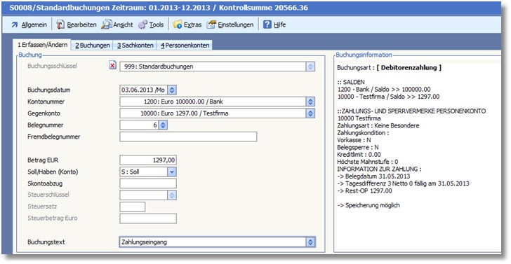 Abb.        Verbuchung Zahlungseingang