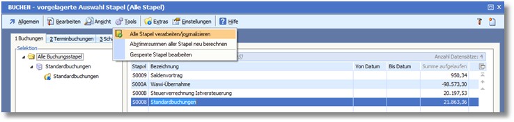 Im Anschluss kann die „Steuerverrechnung Istversteuerung“ aus dem Buchungsstapel heraus vorgenommen werden: