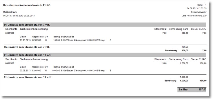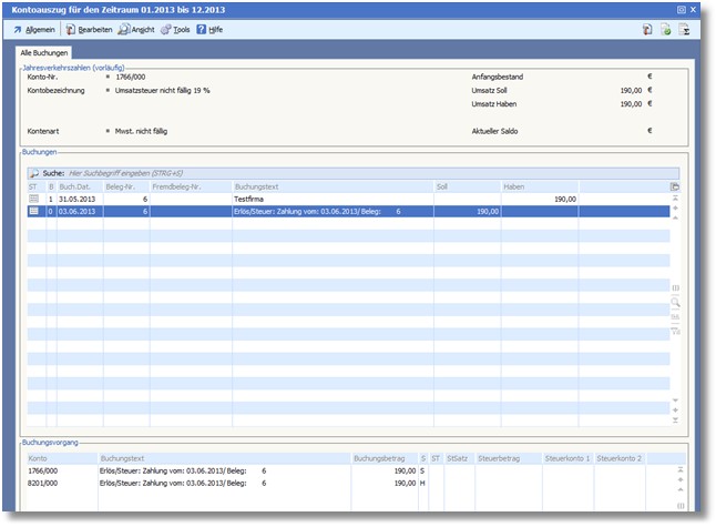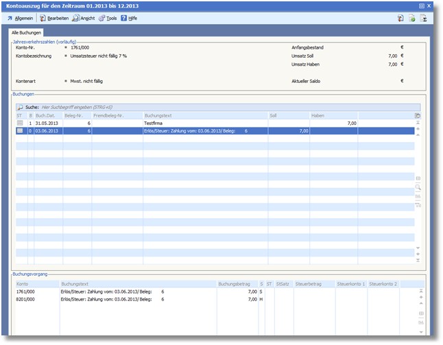 Abb.        USt-Kontennachweis mit Buchungsnachweis