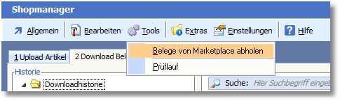 1. Markieren Sie im Shopmanager den gewünschten Marketplace und klicken Sie auf den Menüpunkt "Tools > Artikeldaten an (Marketplacename) übertragen".