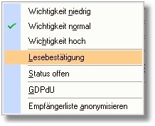 2. Klicken Sie auf den Menüeintrag „Lesebestätigung".