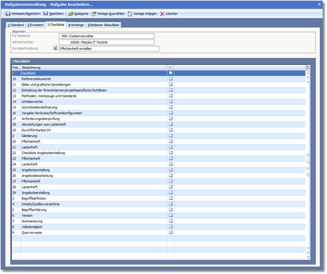 Hier können Sie eine Checkliste für die Aufgabe erstellen bzw. vorhandene Vorlagen nutzen.