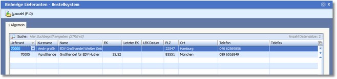 Hier werden die Lieferanten aufgelistet, bei denen der Artikel bisher gekauft wurde.