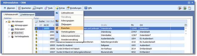 1. Klicken Sie mit der Maus im Adresstamm auf "Extras > Branchen".