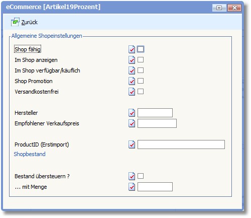 Hier wird angegeben, ob der Artikel in einem Webshop erscheinen soll.