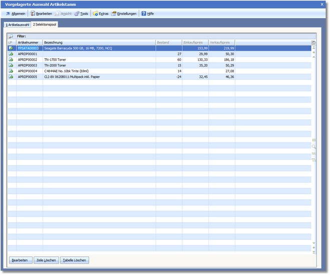 Achtung: Wenn der Selektionspool viele Datensätze beinhaltet, könnte die Aktualisierung aller Daten einige Zeit in Anspruch nehmen!