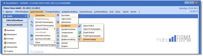 1. Klicken Sie mit der Maus im Hauptmenü auf "Warenwirtschaft > Stammdaten > Konditionen > Rahmenverträge".