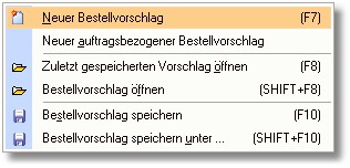 2. Im erscheinenden Popup-Menü wählen Sie den Menüpunkt "Neuer Bestellvorschlag".
