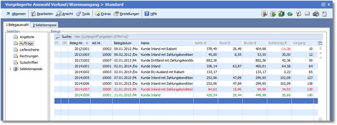 Über den Menüeintrag "Bearbeiten > Optionen/Parameter > Farbleitsystem" in der Positionserfassung können Sie festlegen, mit welcher Schriftfarbe der Beleg in der Belegübersicht dargestellt wird.