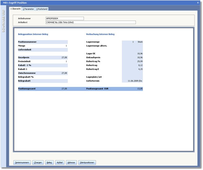 - Detailauskunft über Parameter der Belegposition