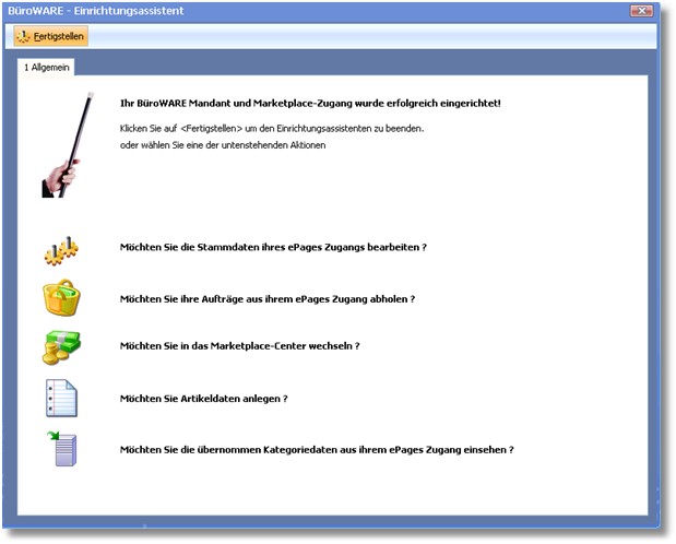 Das Programm richtet nun Ihren neuen Marketplace ein und übernimmt die Daten vom Shop, sofern die Option für die Artikelübernahme gesetzt wurde.