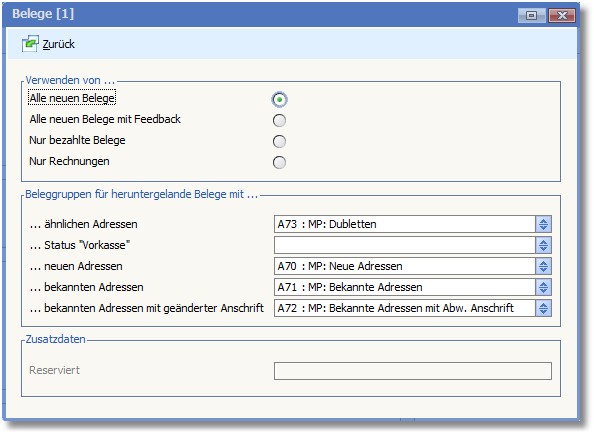 Legen Sie in diesem Bereich fest, welche heruntergeladenen Belege zur weiteren Verarbeitung verwendet werden sollen. Hierbei stehen folgende Optionen zur Auswahl: