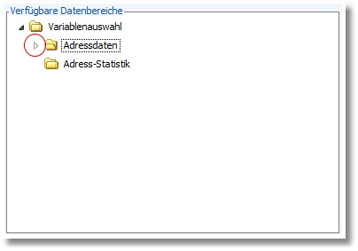Durch den kleinen Pfeil (im Bild rot eingekreist) vor einem Datenbereich wird signalisiert, dass dieser Bereich in Unterbereiche (Themen) strukturiert ist.
