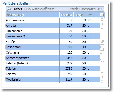 Navigation:  Warenwirtschaft > Stammdaten > Selektionspools > Neuen Selektionspool erstellen > Eigenschaften > Spalten >
