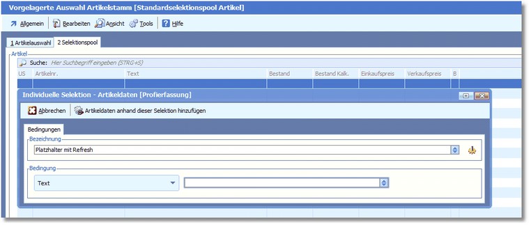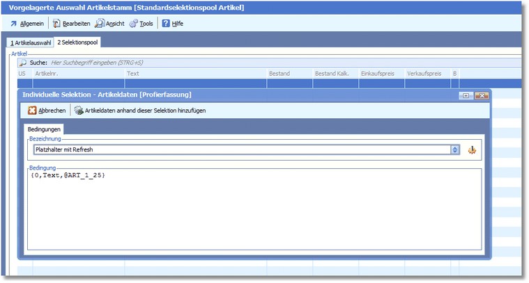 Navigation:  Warenwirtschaft > Stammdaten > Selektionspools > Neuerungen Selektionspool > Profierfassung > Platzhalter >