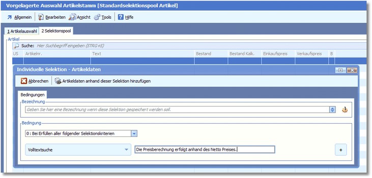 Navigation:  Warenwirtschaft > Stammdaten > Selektionspools > Neuerungen Selektionspool >