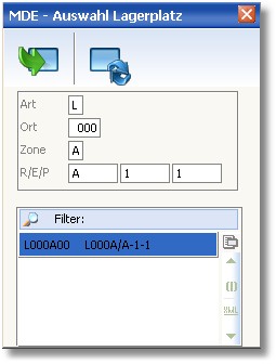 wo Sie LAGERART, LAGERORT, LAGERZONE, REGAL, EBENE und PLATZ festlegen.