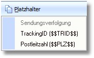 Als Platzhalter kann hier die Tracking/Paketnummer und die Postleitzahl des Empfängers verwendet werden. Diese können über den Symbolbutton < Platzhalter > ausgewählt werden.