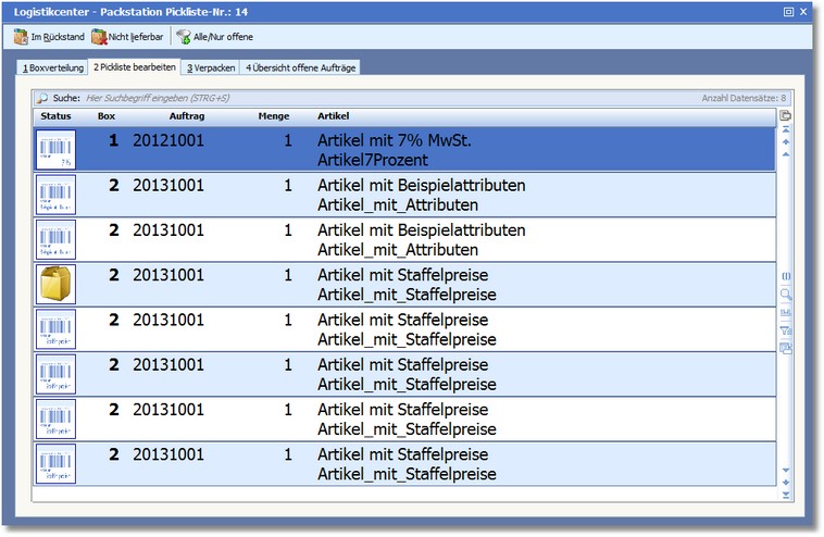 << Hier KLicken um eine Inhaltsübersicht anzuzeigen >> Navigation: Warenwirtschaft > Lagerverwaltung > Lager/Logistikcenter > Packstation > Pickliste bearbeiten |